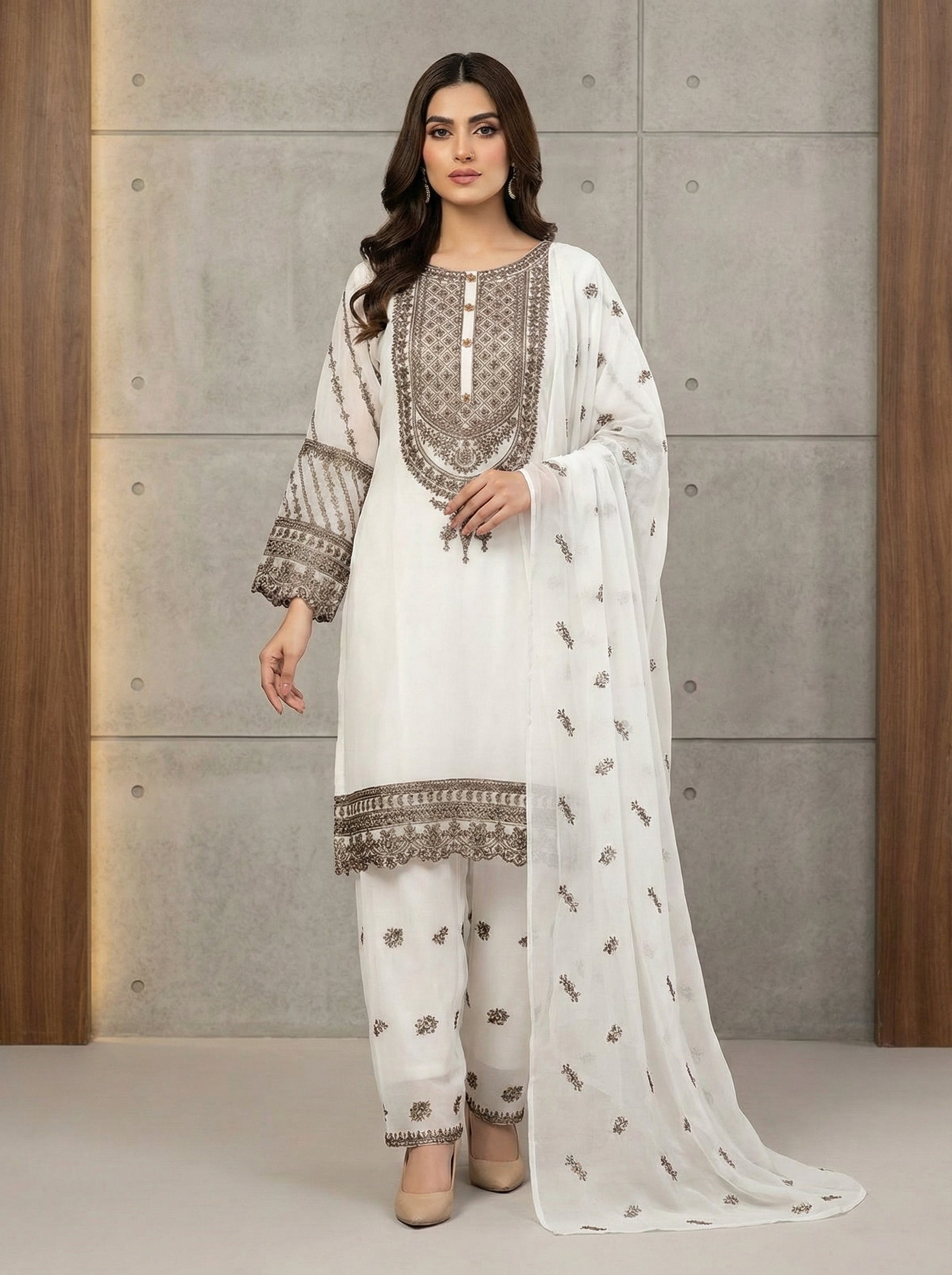 Shirt: Pure chiffon, fully embroidered and handmade,